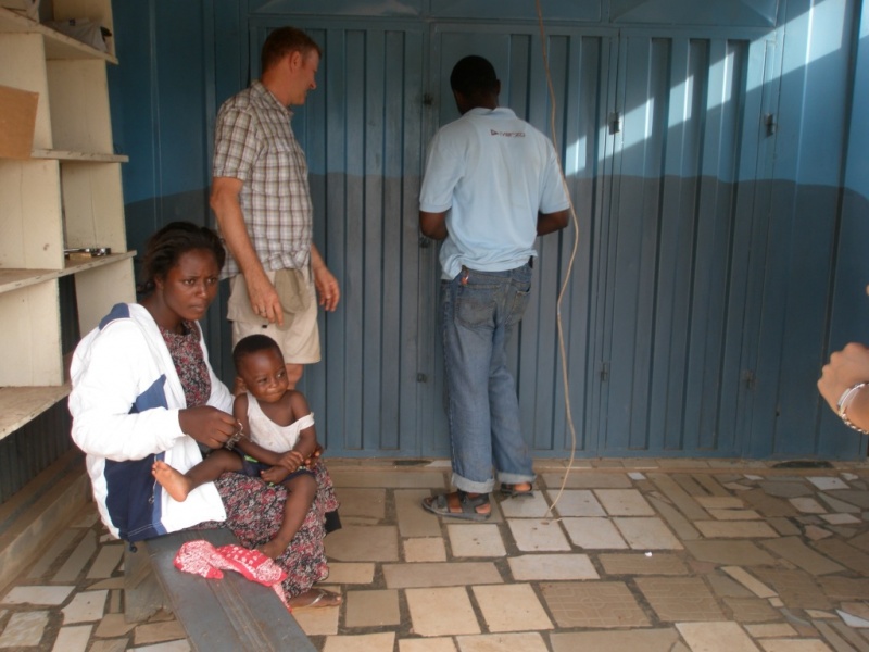 En dat allemaal op een winkeloppevlak van zo’n 2,5 bij 2,5 m. Vervolgens pikken we David op bij het computercentrum en rijden naar Kumasi om daar David’s uit Engeland overgekomen broer Sam op te zoeken. Hij is overgekomen voor de begrafenis van een neef, dus ook wij gaan naar de begrafenis. Ook dit is niet zoals in Nederland. De feitelijke begrafenis gebeurt altijd kort na het overlijden maar een tijdje daarna is er op een zaterdag een groot samenzijn met familie, vrienden en kennissen. Iedereen is in het zwart, of in elk geval donkergrijs soms gecombineerd met rood. De mannen dragen vaak een traditionele omslagdoek. Dit is een enorme lap zwarte stof, van 12 yard lang dus 4.64 m met verschillende patronen, die op een bepaalde manier om het lichaam wordt gewikkeld. De begrafenis is vooral voor de mensen, die enige afstand hebben tot de overledene, een vrolijke gebeurtenis met eten en drinken en muziek van een live band. Omdat de begrafenis een kostbaar gebeuren is, wordt er van de bezoekers een bijdrage gevraagd. Bij de toegang tot het straatje waar de begrafenis was stond een bord waarop gevraagd werd binnen 2 weken 5 cedi (€ 2,50) te geven.